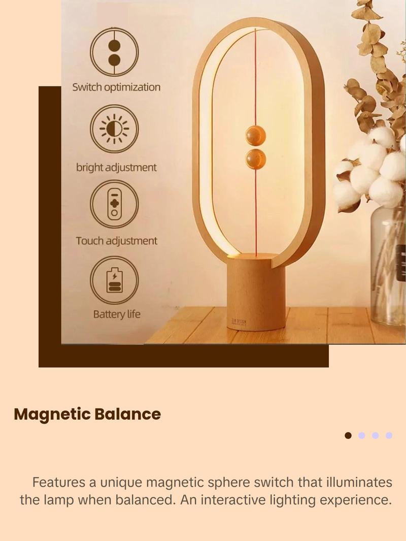 The **BalanceGlow™ Magnetic Ellipse LED Lamp – AquaLevity™ Edition** uses a unique magnetic switch system to create a calming, interactive lighting experience. When the two wooden spheres meet in mid‑air, the lamp turns on, creating a warm ambient glow that transforms any room into a modern zen sanctuary.