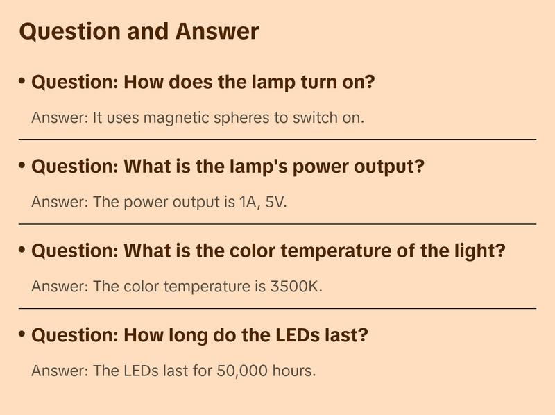 Lift the lower sphere and let it meet the upper one to activate the lamp. A satisfying, interactive experience that feels like magic.